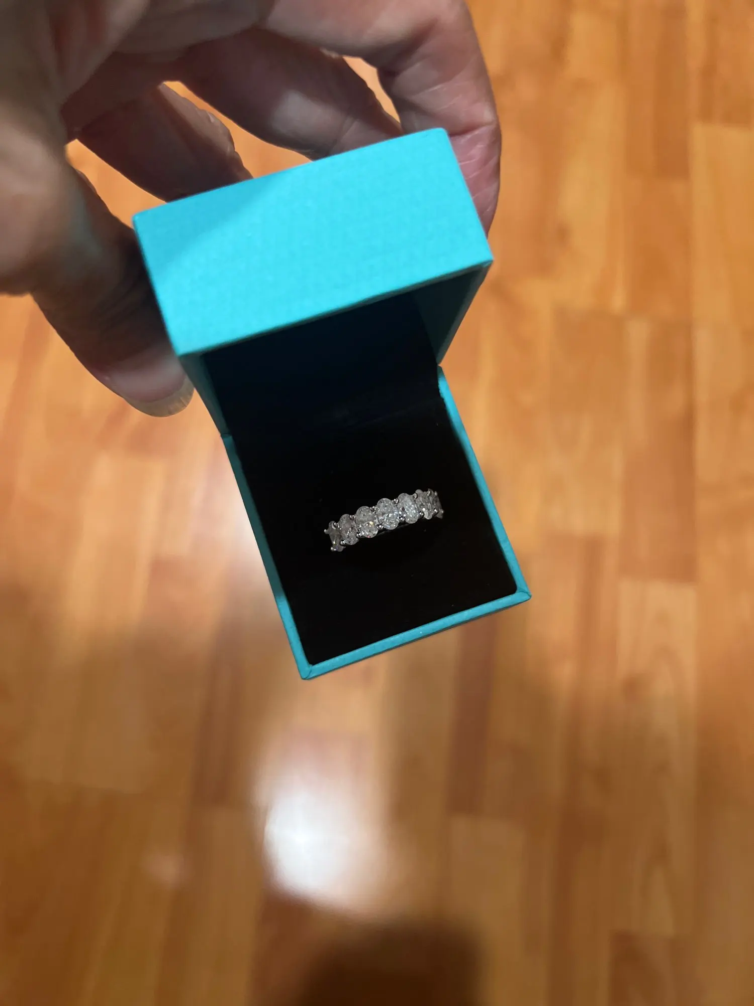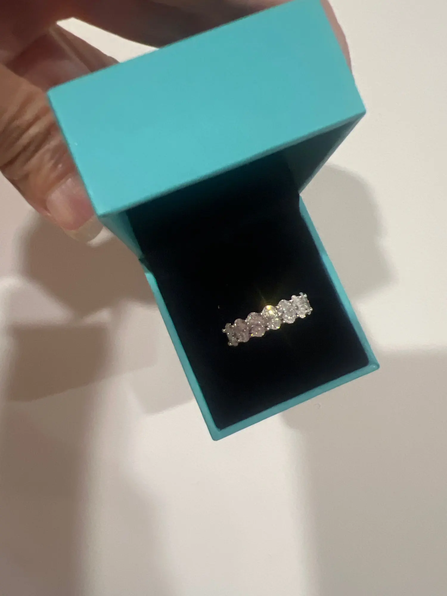 • Elegant half eternity design with stones across the top half