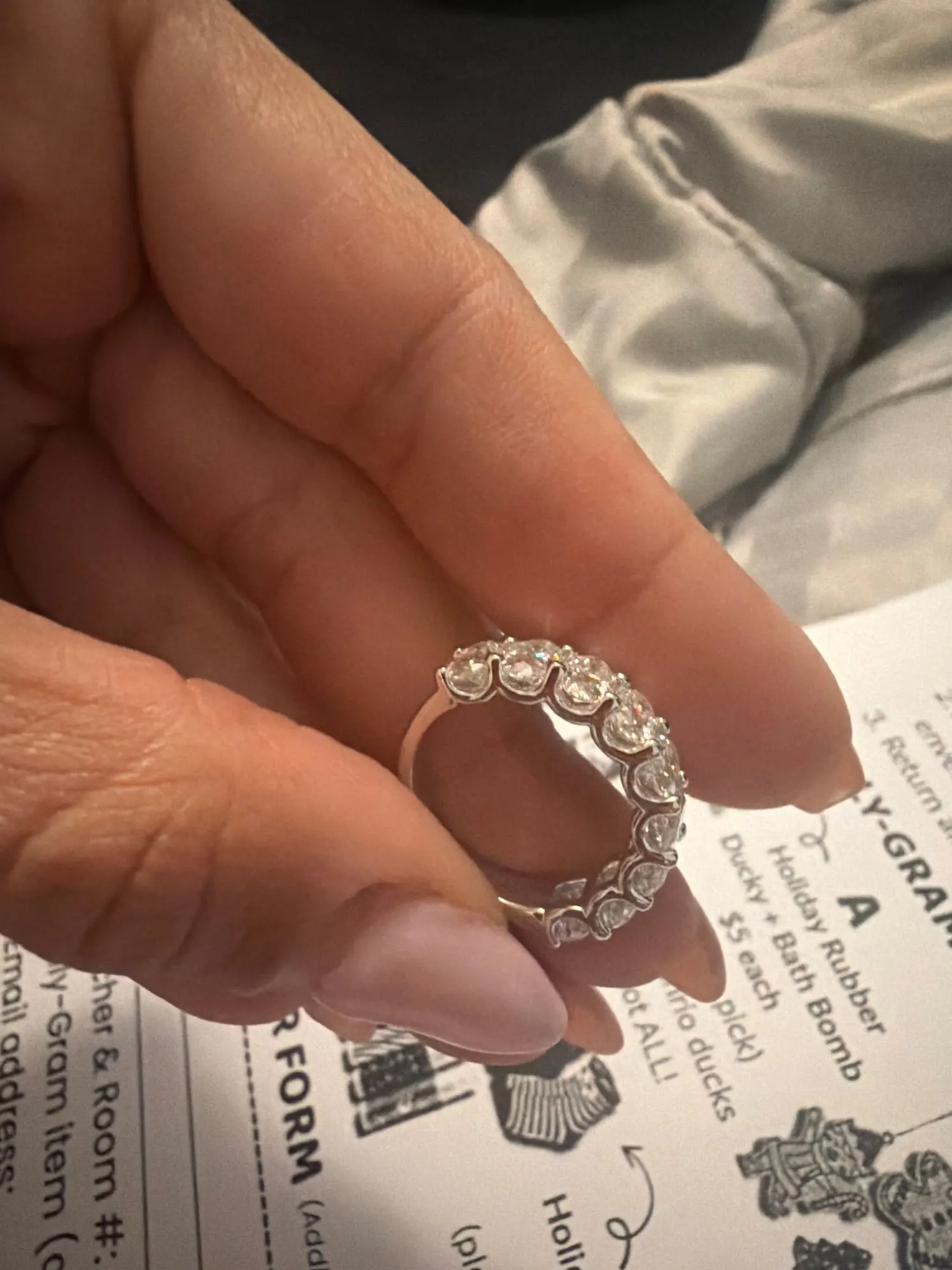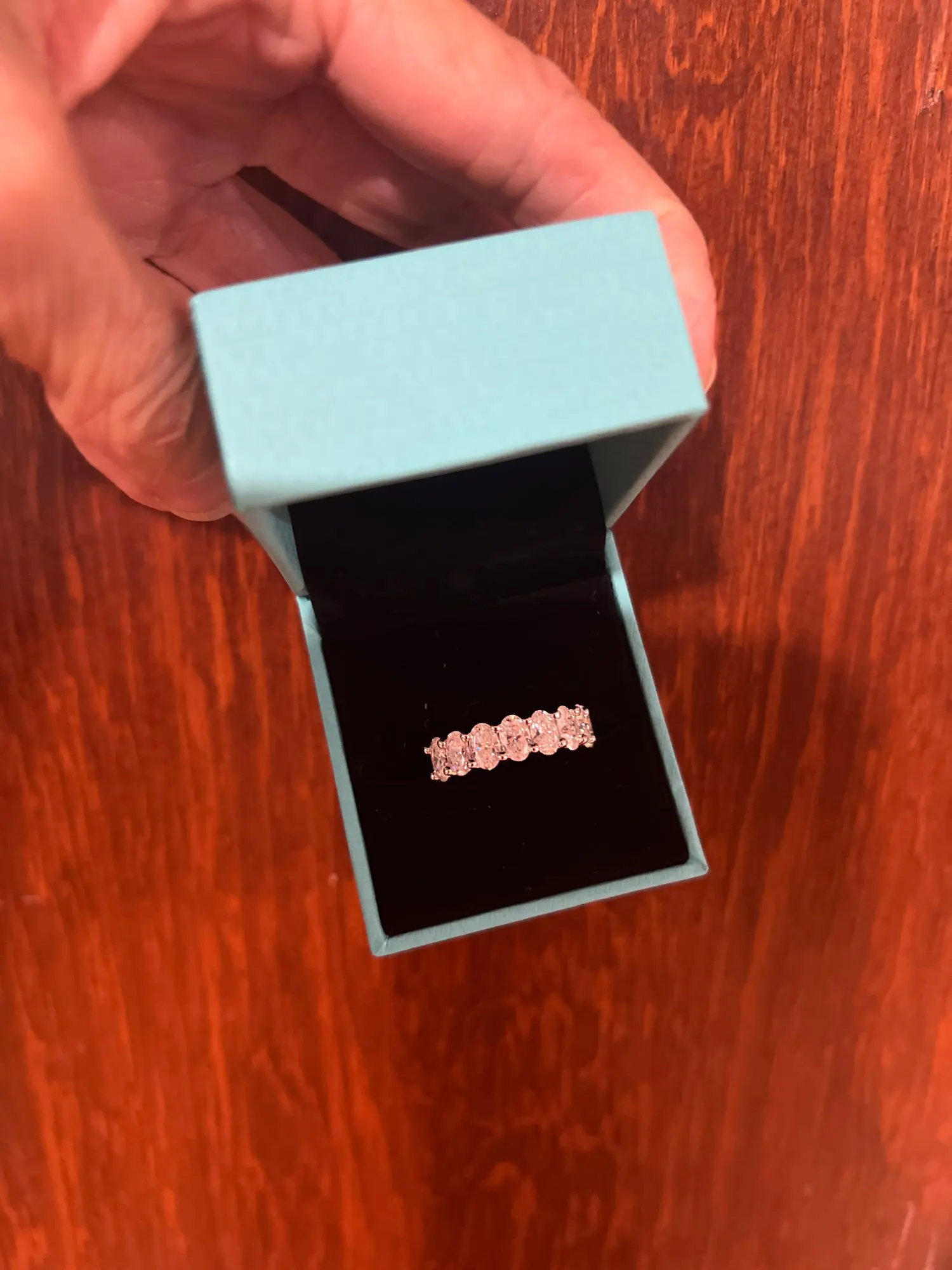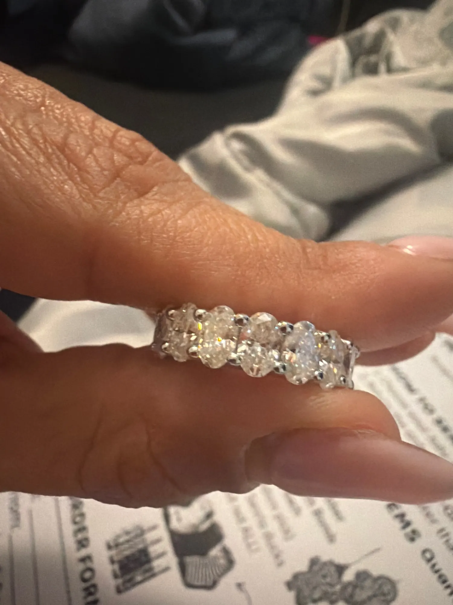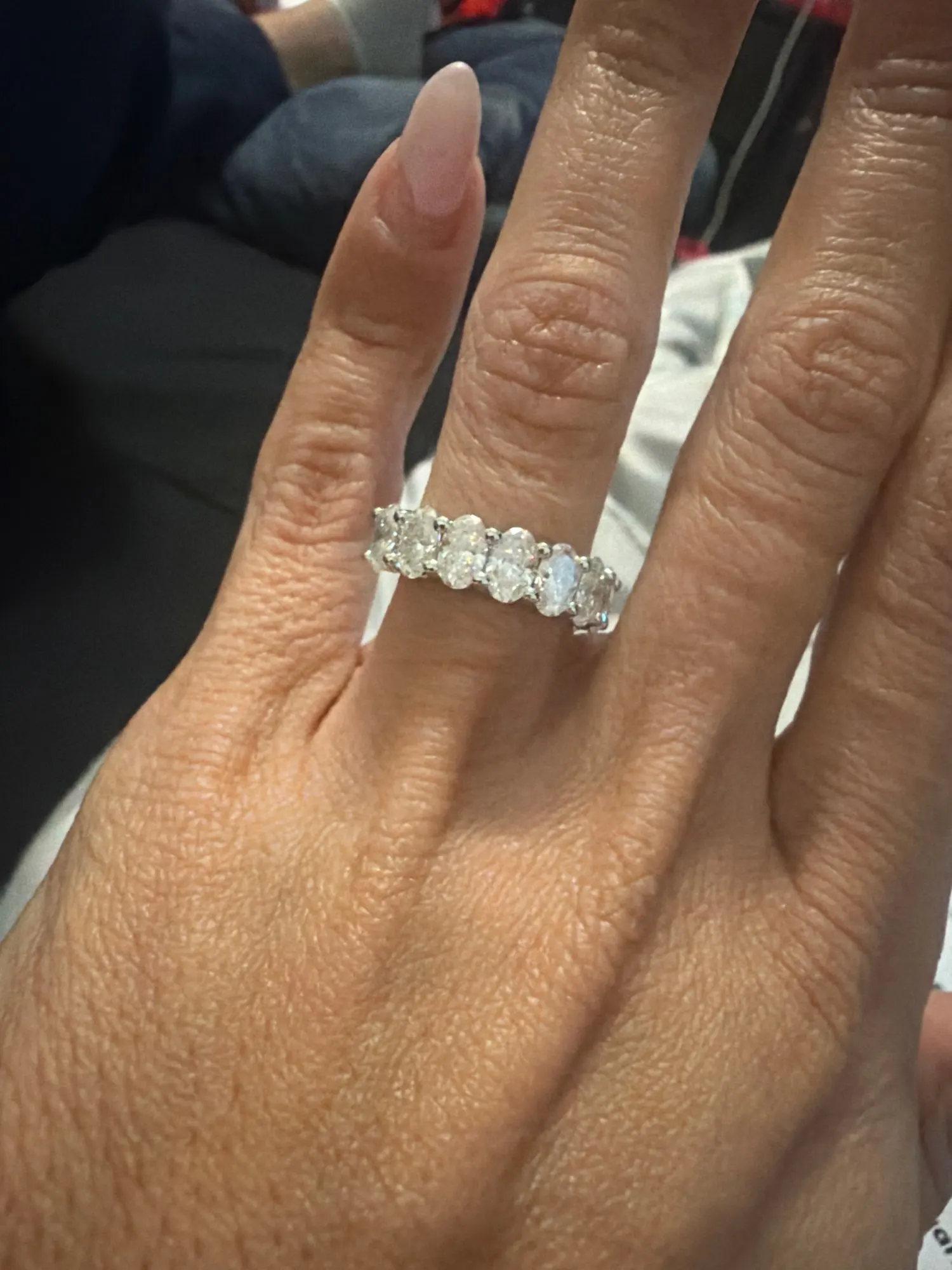 0.5ct Oval Moissanite Half Eternity Band - Sterling Silver Wedding Ring