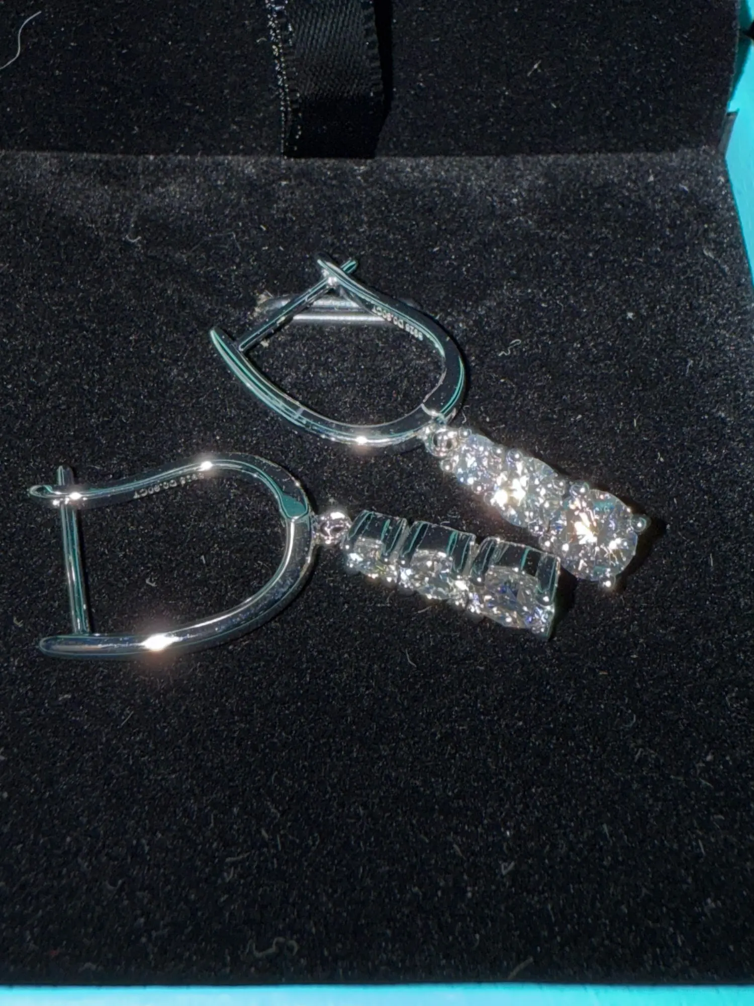 These dangle drop earrings feature brilliant moissanite stones that catch the light beautifully with every movement. The D-color (colorless) grade ensures exceptional brilliance, while the elegant drop design adds sophistication and grace to any outfit, making them perfect for weddings, parties, or special occasions.