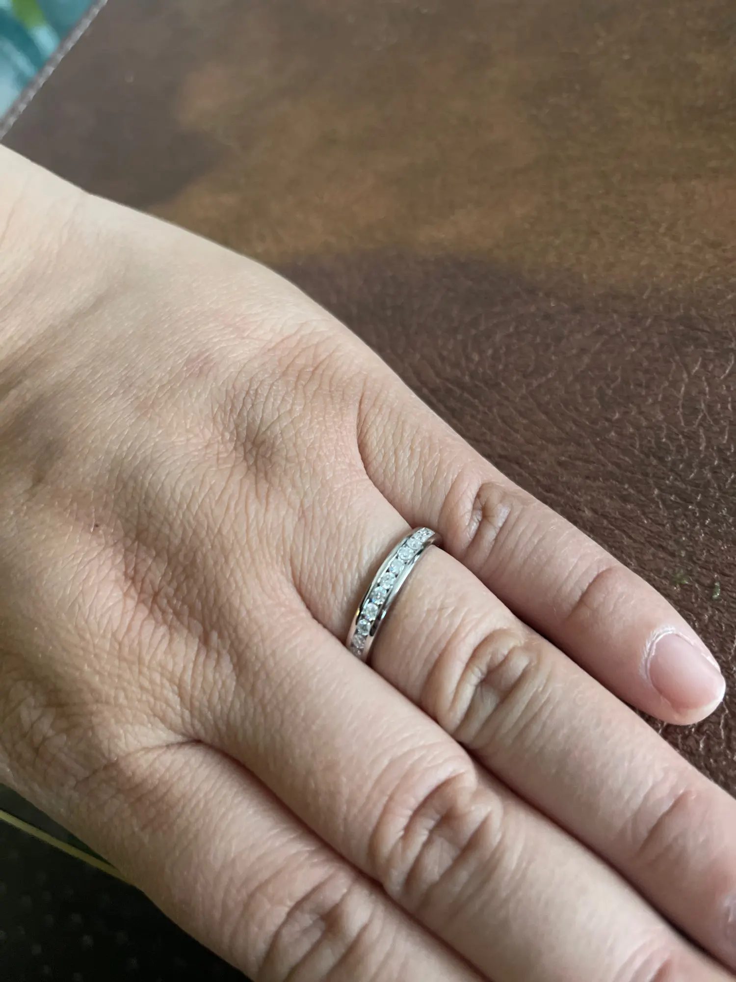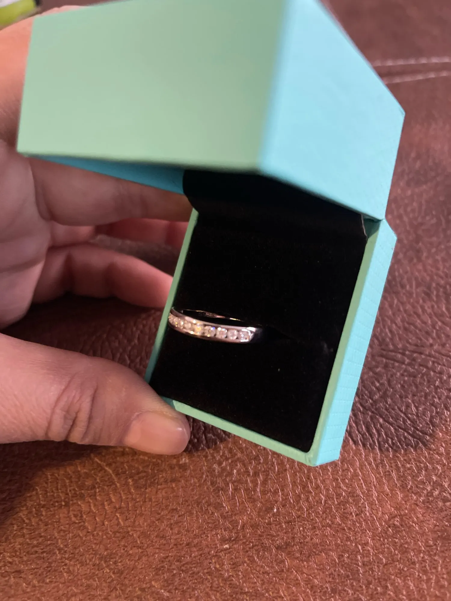 Jeffrey Schroeder Very cute! It shines a lot, although it doesn't have the moissanite engraving, but it comes with its respective code to verify if it's real... it's cute, if you want something simpler this is ideal.