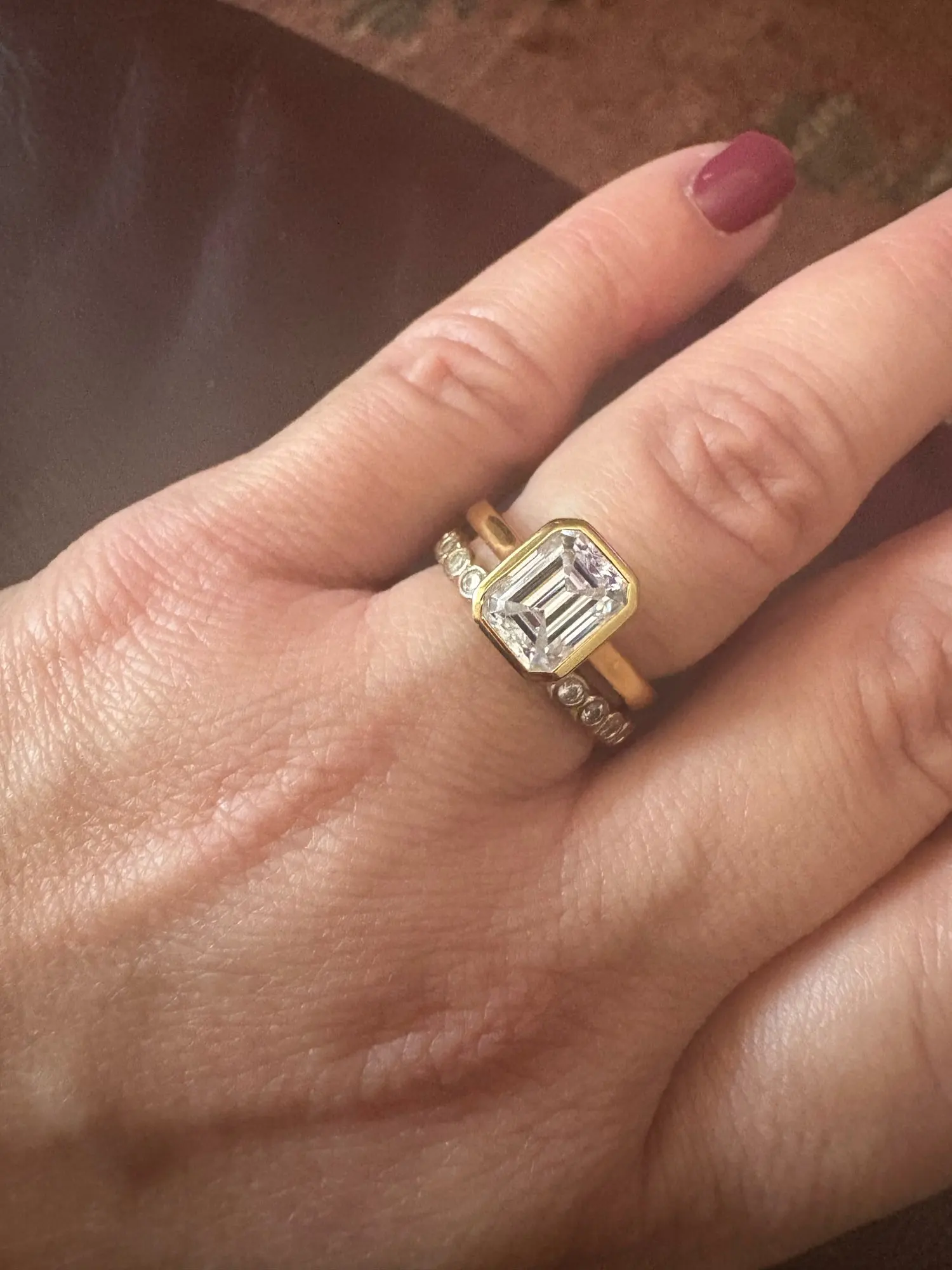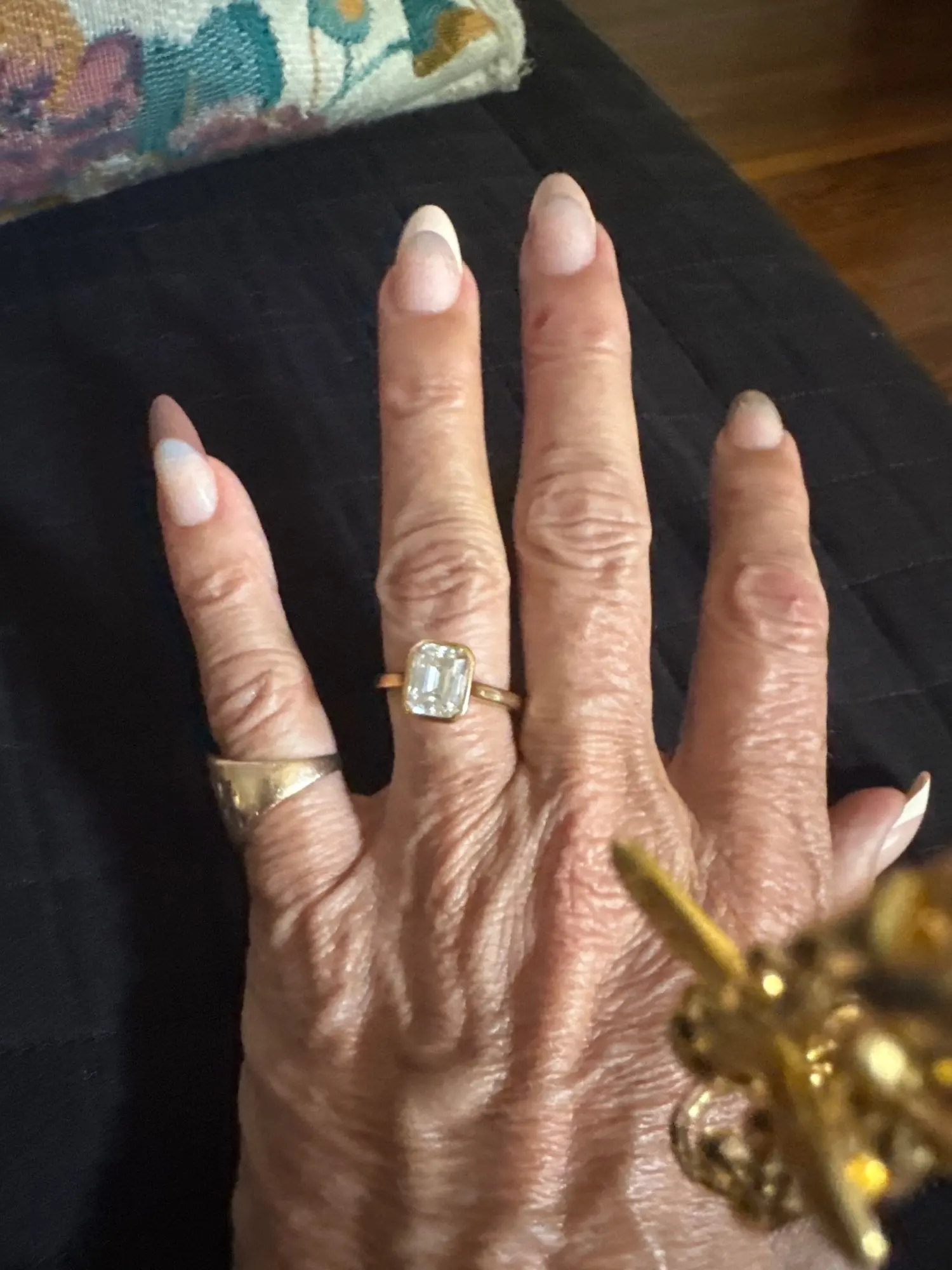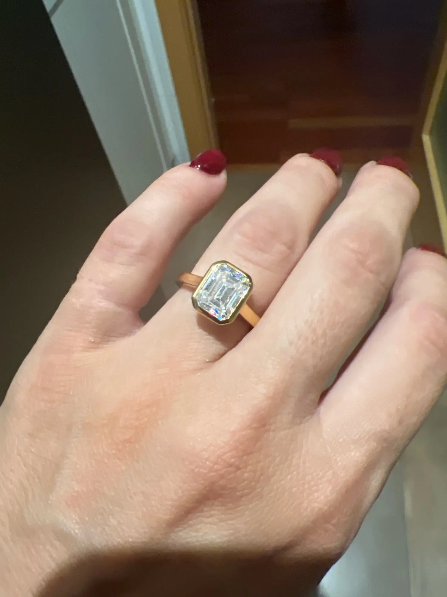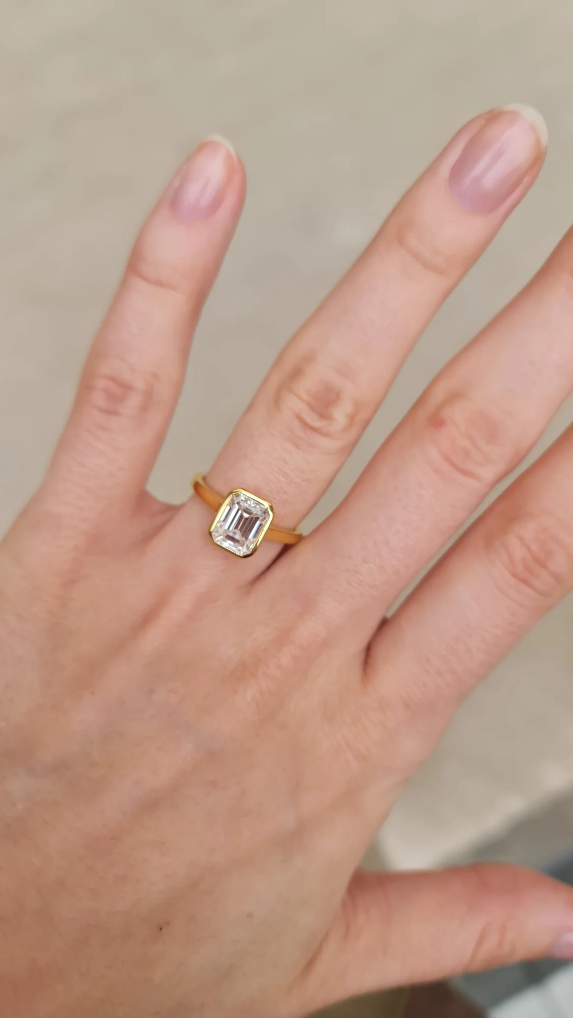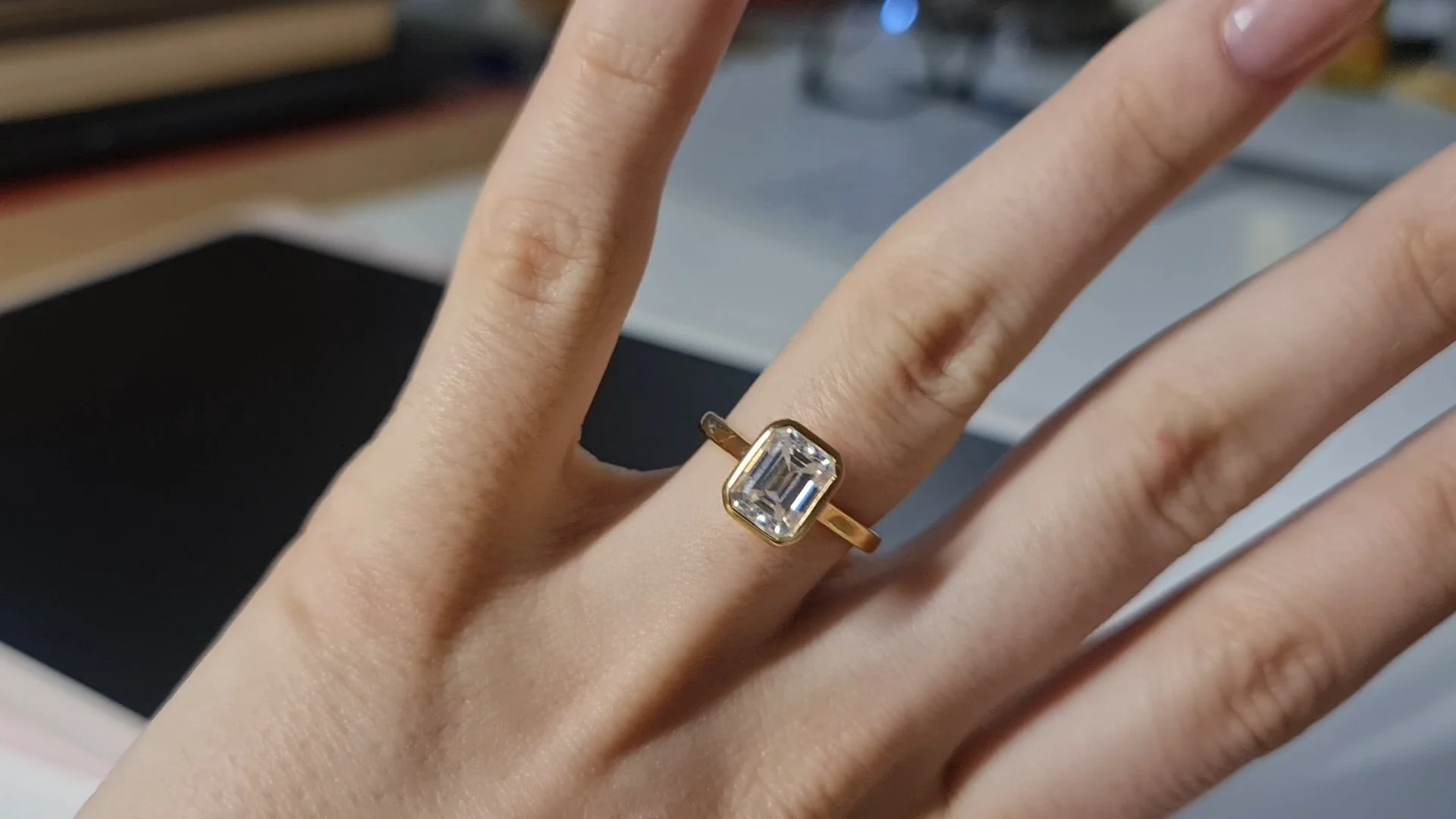 Eliseo Quigley A beautiful ring. Very elegant. The stone sparkles beautifully, doesn't look like glass but might be a very good imitation. The only thing is that it's unclear how the gold coating lasts; whether it will wear off quickly or not.