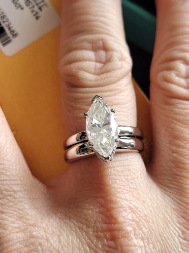 - 3ct Marquise Cut: Elegant football-shaped center stone with dramatic elongating effect