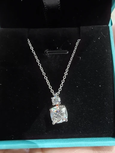 Indulge in luxury with this exquisite pendant necklace featuring premium D color moissanite stones in a romantic cushion cut. Set in genuine 925 sterling silver, this piece combines vintage-inspired design with exceptional brilliance, creating a statement necklace that captures light beautifully with its soft, rounded corners and brilliant facets.
