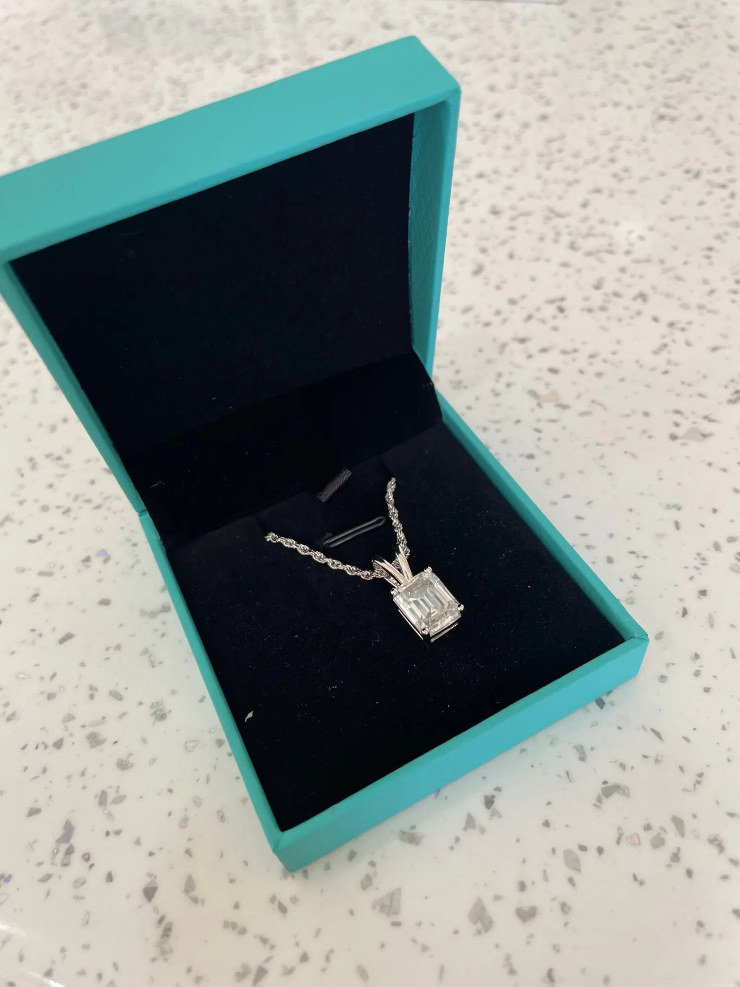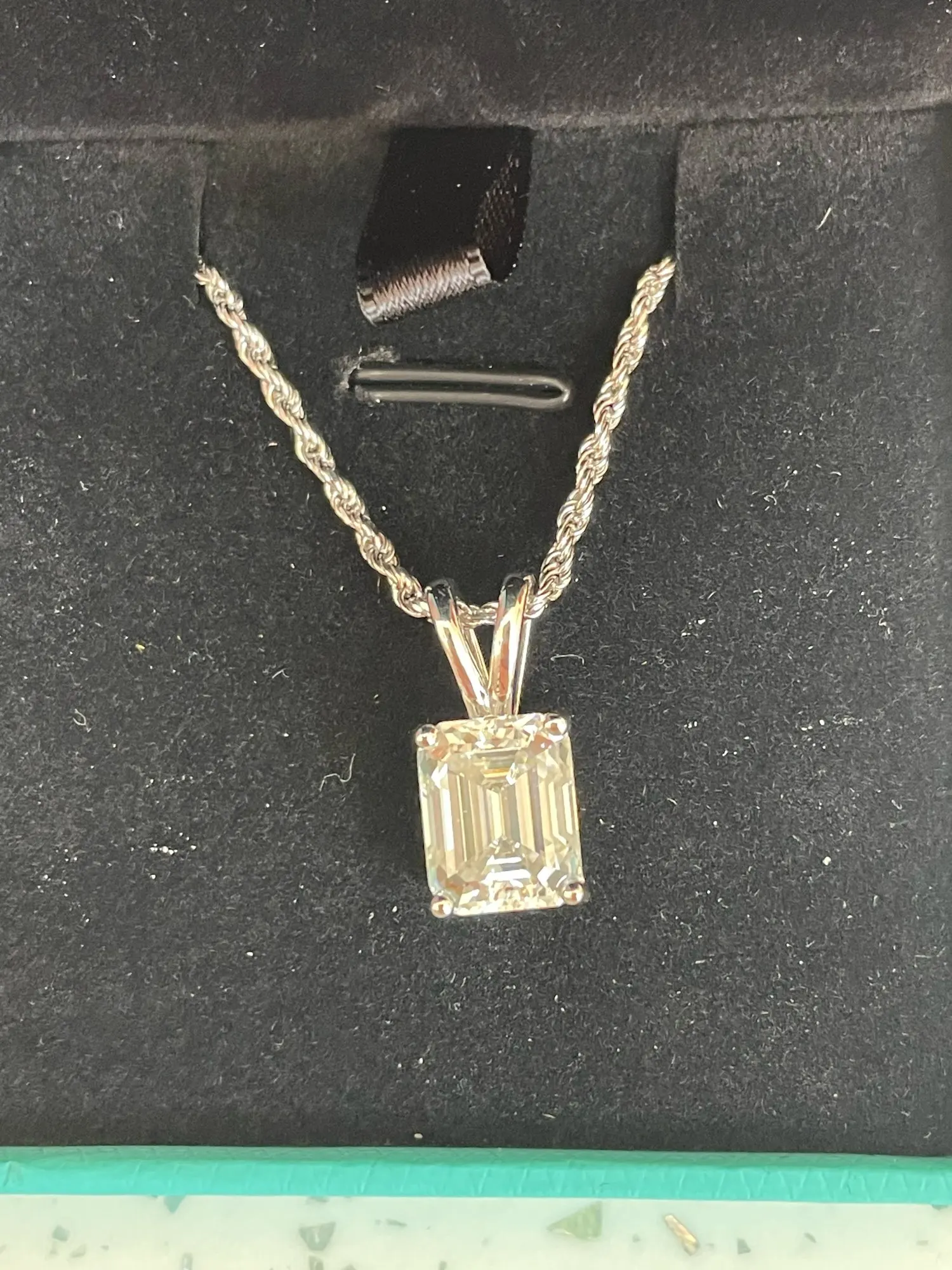 Indulge in luxury with this exquisite pendant necklace featuring premium D color moissanite stones in a sophisticated emerald cut. Set in genuine 925 sterling silver, this piece combines vintage Art Deco design with exceptional brilliance, creating a statement necklace that captures light beautifully with its distinctive step-cut facets.