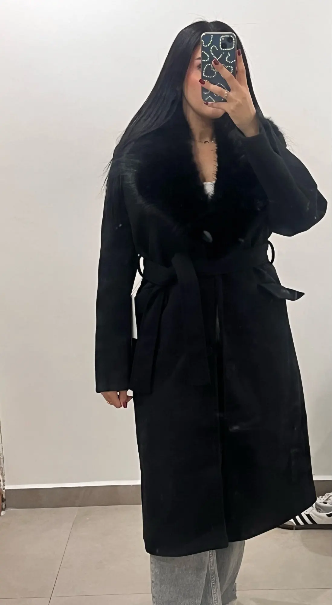 Layer over tailored trousers and a blouse for office elegance, or pair with a dress and heels for evening sophistication. Cinch the belt for a defined waist and structured look, or leave it open for flowing, relaxed elegance. The detachable fur collar offers versatile styling—wear it for maximum glamour or remove for a sleek, minimalist look. Add leather gloves and a structured handbag for timeless refinement.