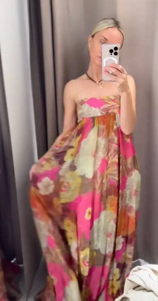 Make a statement with this stunning strapless pleated maxi dress that captures the essence of garden-party glamour and feminine sophistication. Featuring a vibrant floral print, elegant pleated detailing, and an alluring backless design, this dress brings effortless elegance to every special occasion—perfect for the woman who embraces romantic style and confident allure.